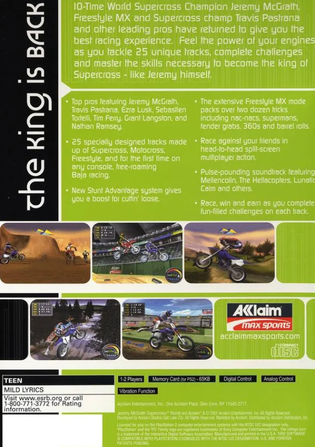 Jeremy McGrath Supercross World Sony Playstation 2 GameProduct Details Part Number: PS2_JEREMY_MCGRATH_SUPERCROSS_WORLDU…
