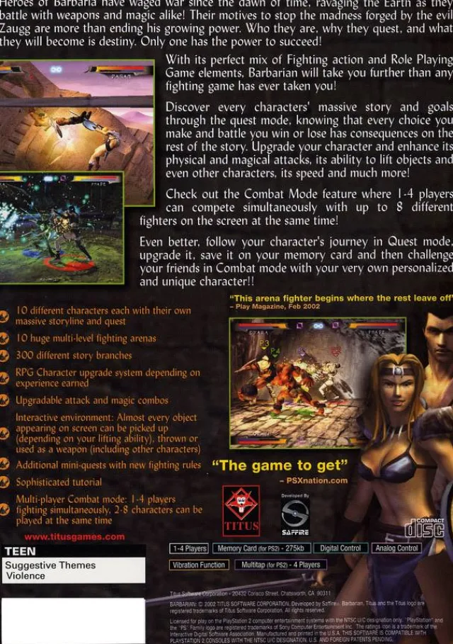 Barbarian Sony Playstation 2 Game Product Details Part Number: PS2_BARBARIAN UPC:091493024390Condition:UsedGenre:Action …