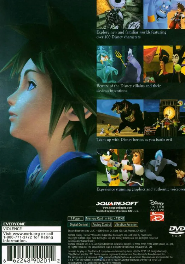 Kingdom Hearts is the story of Sora, a 14-year-old boy whose world is shattered when a violent storm hits his island-paradise home, and he is separated from his two closest friends, Riku, a 15 year-old boy, and Kairi, a 14 year old girl. At the same time, there is turmoil in Disney castle. King Mickey is missing, and Court Wizard Donald and Captain Goofy set out to find him. On their travels they meet Sora on his own search for his lost friends. The three are told of ominous creatures known as the Heartless – beings without hearts derived from an unknown dimension and as it turns out, manipulated by Disney villains and the ones responsible for the devastating storm. Upon discovering the link between the Heartless, the storm and the disappearance of King Mickey, Sora, Donald and Goofy join forces and help familiar Disney heroes to save their worlds from the Heartless.