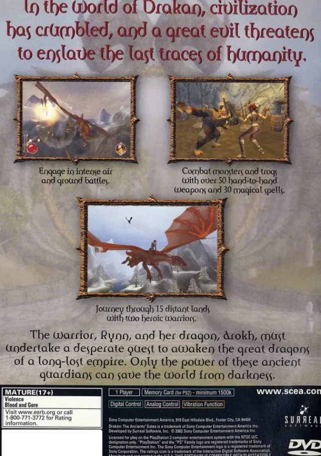 Drakan Ancients Gates Sony Playstation 2 Game Product Details Part Number: PS2_DRAKAN_ANCIENTS_GATES UPC:662248903118Con…
