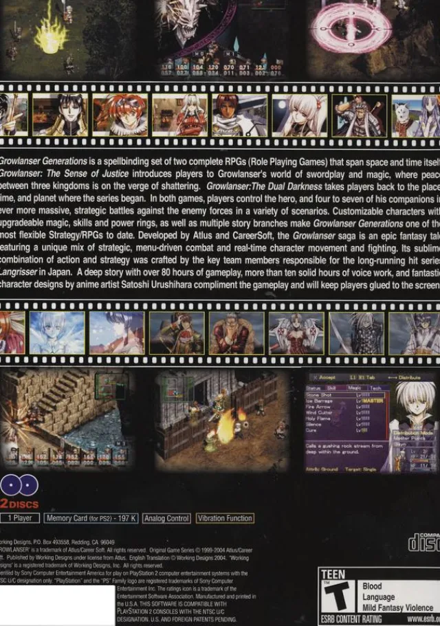 Growlanser Generations for Playstation 2 comprises two comprehensive RPGs, ‘Growlanser: The Sense of Justice,’ and ‘Grow…