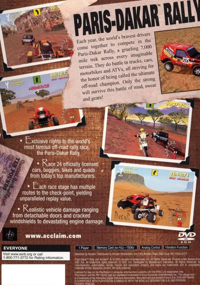 Paris-Dakar Rally Sony Playstation 2 GameProduct Details Part Number: PS2_PARISDAKAR_RALLYUPC: 021481232582Condition: Us…
