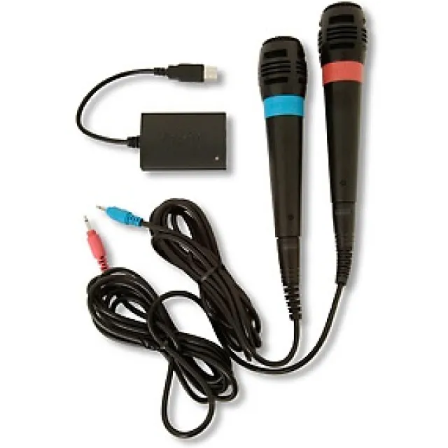 Singstar microphone set for use with all Singstar games on Playstation 2 or 3! Set includes – 1 Red Microphone 1 Blue M…