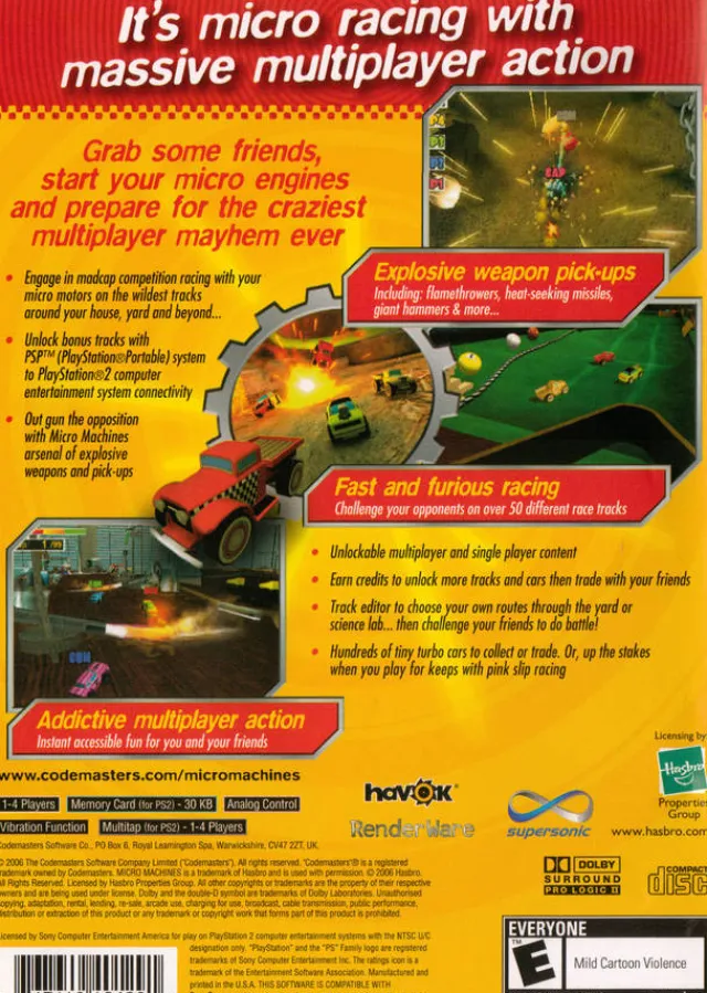 Micro Machines V4 Sony Playstation 2 GameProduct Details Part Number: PS2_MICRO_MACHINES_V4UPC: 767649401291Condition: U…