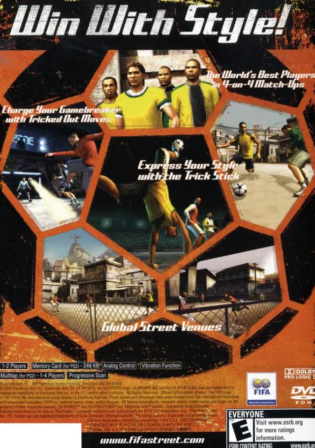 FIFA Street is a combination of arcade action blended with the culture of freestyle street soccer. By removing the rules from the simulation soccer experience, FIFA Street exposes the heart of the world’s beautiful game, on-the-ball flare and individual style. Leading this movement are the world’s top professional players, showing off their skills and individual style in 4-on-4 match-ups against the backdrop of global venues that represent the true culture of street soccer. In the game’s dynamic 1-on-1 encounters, beating your opponent will require skill, technique, and the careful selection of specific moves.