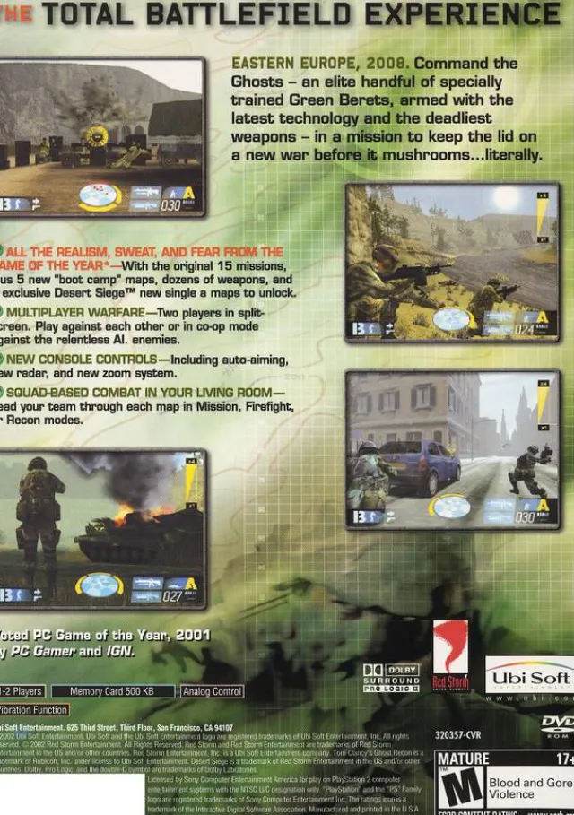 The Red Army is back. Now that Russia’s government has collapsed, a hardline leader is bent on taking over the republics. Take a highly skilled Ghost team through a series of missions that range from demolitions to search-and-rescue and all-out firefights for survival. You can carry dozens of standard and special-issue weapons such as the M16A2, the M4 carbine, and the fearsome and deadly OICW. Next-generation inventory and weapons will give players a glimpse into the real U.S. Army “Land Warrior” program on which Ghost Recon is based.