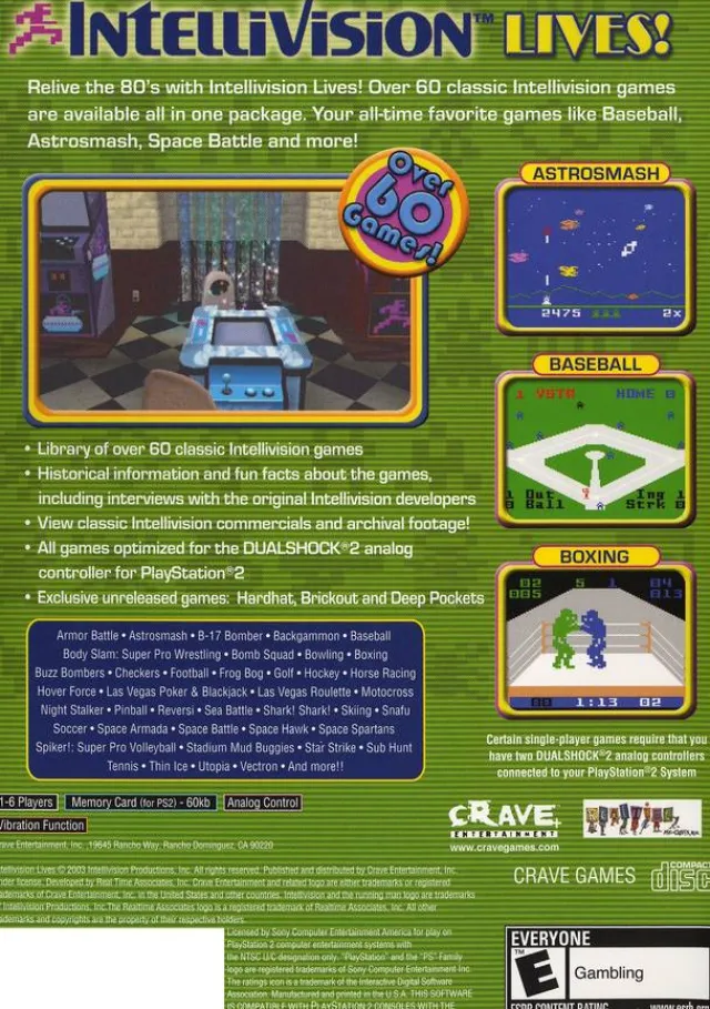 Intellivision Lives Sony Playstation 2 Game Product Details Part Number: PS2_INTELLIVISION_LIVES UPC:650008399189Conditi…