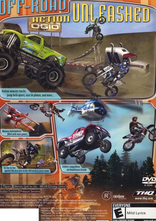 If you like mud, dirt, high speeds and serious attitude all on two wheels, MX Unleashed is for you! The newest installment of the MX series gives off-road racers more freedom than ever before. Challenge yourself in the free world mode – an off-road playground filled with treacherous terrain, minigames and machine races. Go bar to bar against the top champions in the world through the season long Supercross and Outdoor National series in an extensive career mode.