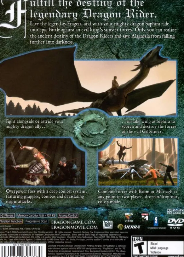 Eragon Sony Playstation 2 Game Product Details Part Number: PS2_ERAGON UPC:020626724364Condition:UsedGenre:Action & Adve…