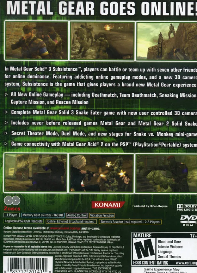 Online Metal Gear Solid 3 Subsistence Ps2 Games