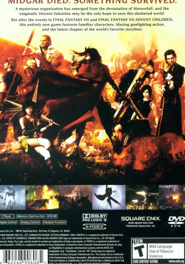Three years after the events of Final Fantasy VII, A mysterious organization has emerged from the devastation of Meteorfall, and the enigmatic Vincent Valentine may be the only hope to save this shattered world. The members of this enigmatic group are the ones who were trapped under the ruins of Midgar for three long years the Deepground soldiers. Vincent Valentine finds himself pursued by several elite members of the mysterious Deepground organization. An unrelenting chain of events leads Vincent to the truth behind his past and forces him once again to be the key player in a battle for the play itself and all those living on it.
