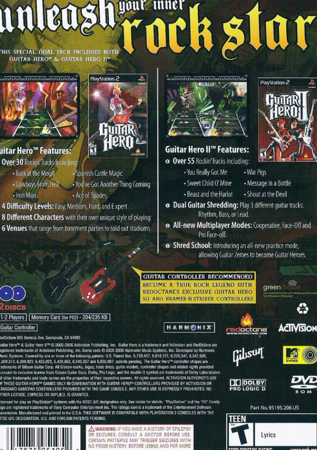 Guitar Hero and Guitar Hero 2 Double Pack Sony Playstation 2 GameProduct Details Part Number: PS2_GUITAR_HERO_AND_GUITAR…