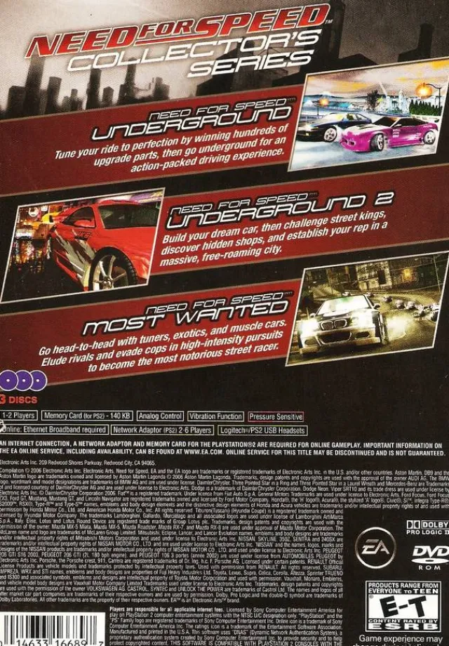 Need for Speed: Collector’s Series for Playstation 2. This three game collection includes Need for Speed Underground, Ne…