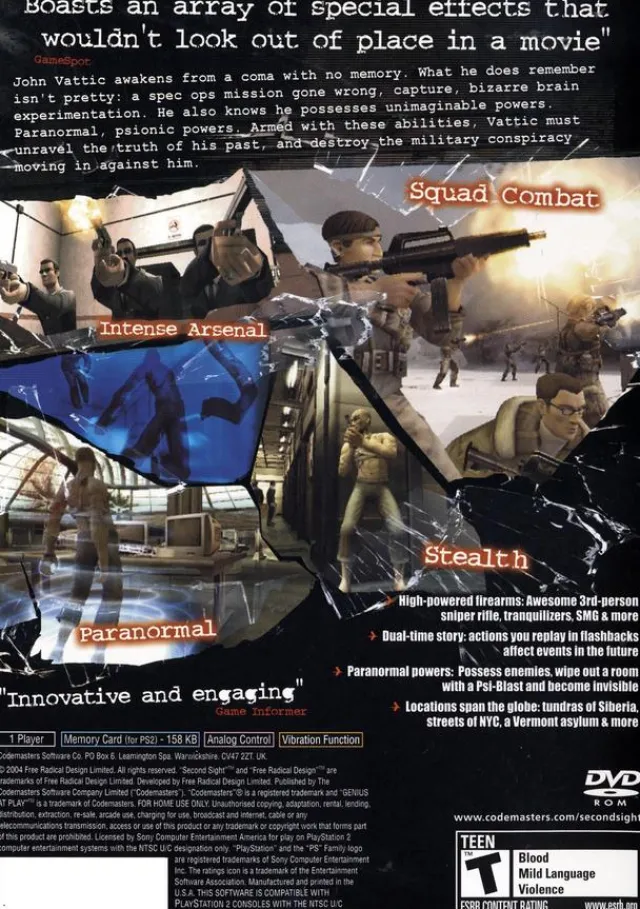 Second Sight Sony Playstation 2 Game