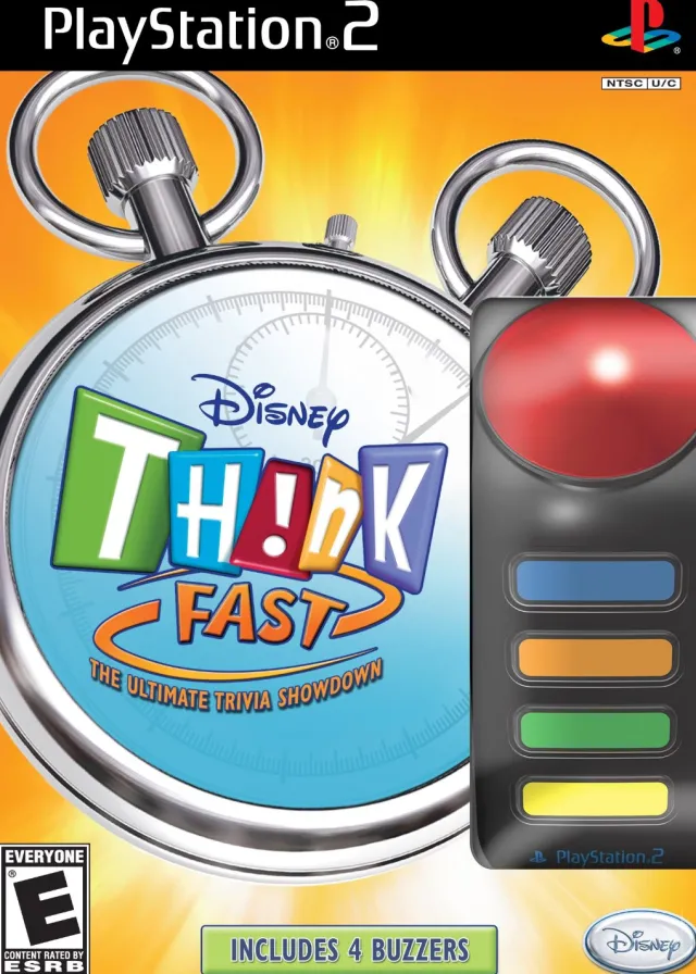 Disney Think Fast Playstation 2 Game bundle includes game with 4 buzzers.Product Details Part Number: PS2_THINK_FAST_BUN…