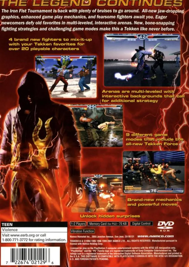 Set two years after the events of Tekken 3, Heihachi is trying to splice DNA from True Ogre into his own genome. It doesn’t work, though — he’s missing the “Devil Gene” required to complete the task successfully. Of course, he knows just who has it — Jin! However, things are complicated by the apparent resurrection of Heihachi’s murdered son, Kazuya. Amidst this background of turmoil and intrigue, the new tournament begins. This version features enhanced graphics, gameplay mechanics, and fearsome fighters. Newcomers engage old favorites in interactive, multileveled arenas.