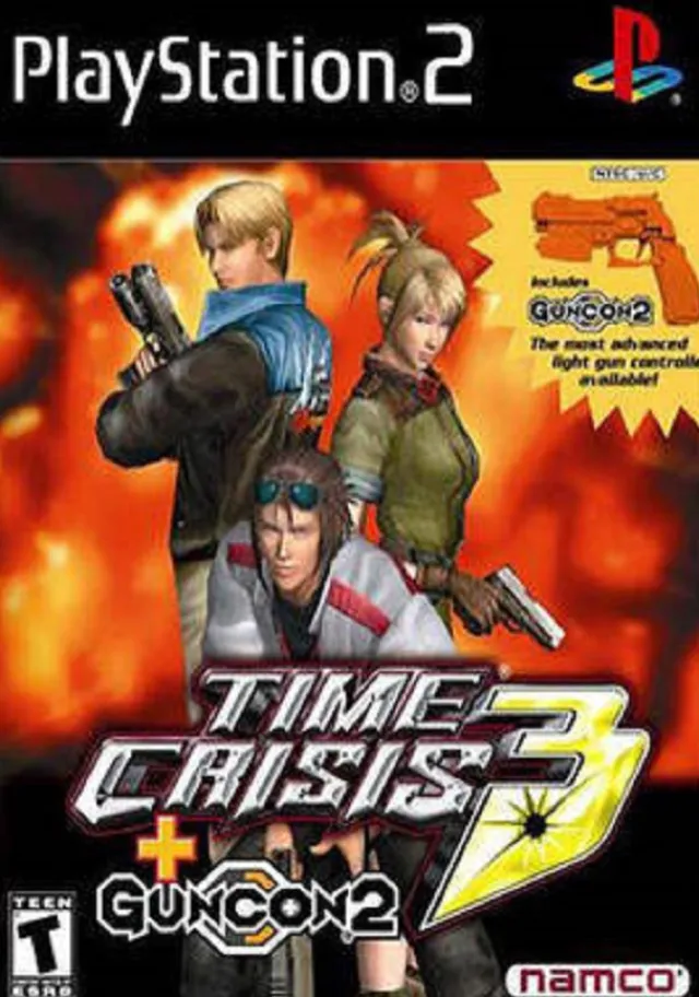Time Crisis 3 Bundle with GunCon 2 Controller for Playstation 2. Play the arcade mode of the game to defeat a tyrannical army and free a rebel group. Shoot all enemies with expert precision, while reloading by shooting off the screen. Test your ability to think quickly by getting rid of all of the enemies on the screen in the allotted time to move onto the next scene.