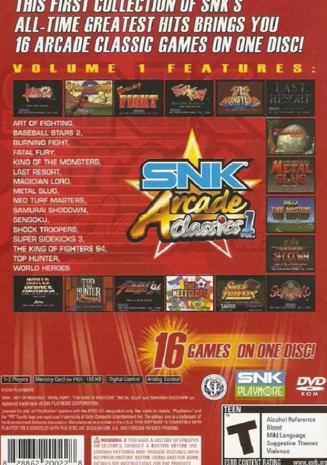 Part Number: PS2_SNK_ARCADE_CLASSICS_VOLUME_1