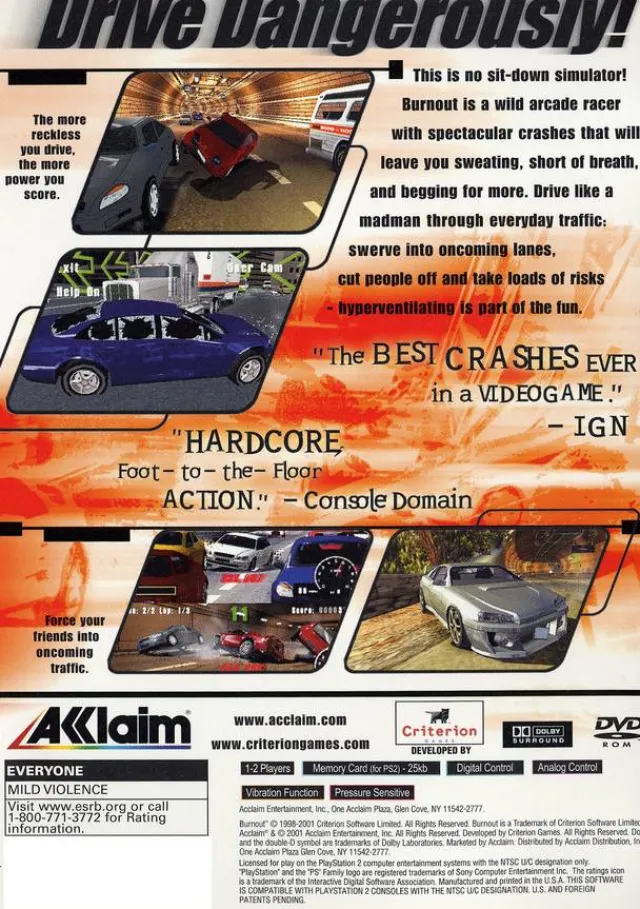 Burnout Sony Playstation 2 Game Product Details Part Number: PS2_BURNOUT UPC:021481232902Condition:UsedGenre:RacingRatin…