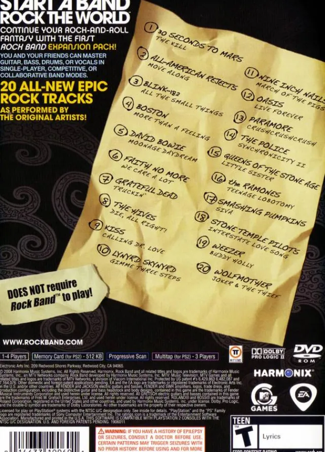 Part Number: PS2_ROCK_BAND_TRACK_PACK_VOLUME_1