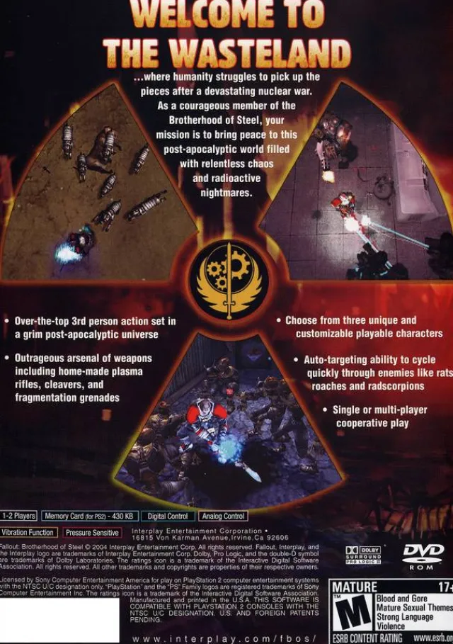 Fallout Brotherhood of Steel Sony Playstation 2 GameProduct Details Part Number: PS2_FALLOUT_BROTHERHOOD_OF_STEELUPC: 02…
