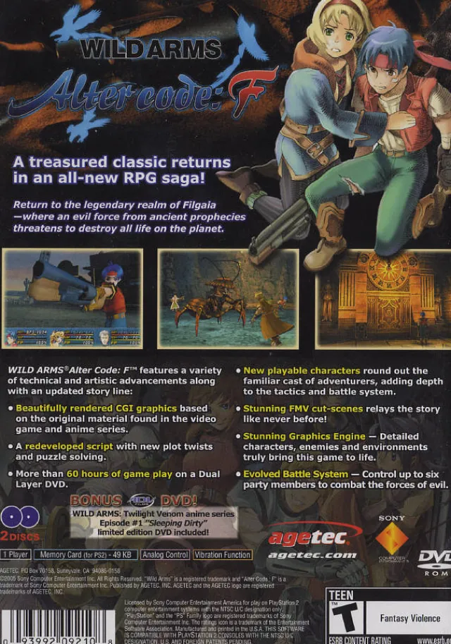 Wild ARMs Alter Code: F Sony Playstation 2 Game Product Details Part Number: PS2_WILD_ARMS_ALTER_CODE_F UPC:093992092108…