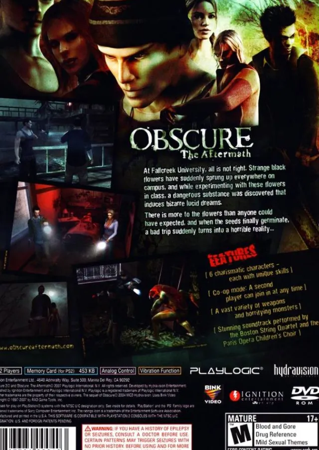 Obscure The Aftermath Sony Playstation 2 Game Product Details Part Number: PS2_OBSCURE_THE_AFTERMATH UPC:893384000403Con…