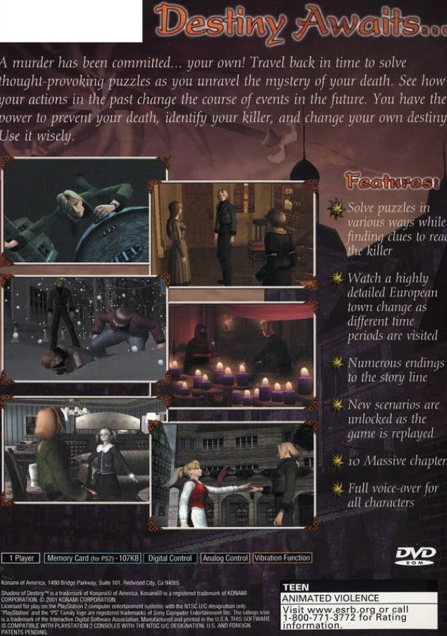 Shadow of Destiny Sony Playstation 2 Game Product Details Part Number: PS2_SHADOW_OF_DESTINY UPC:083717200109Condition:U…