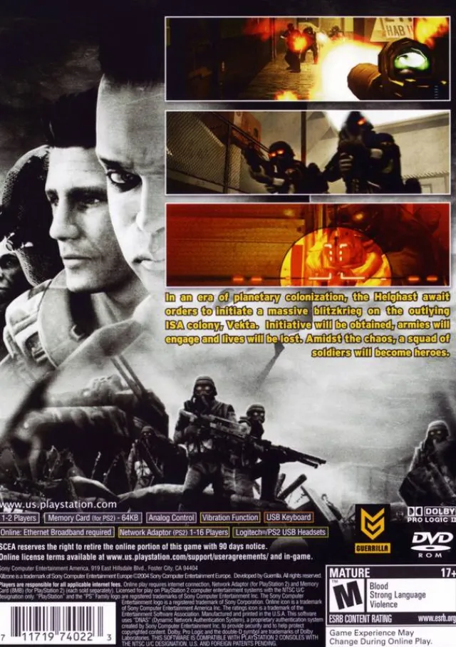 Set in the near future during a period of planetary colonization, Killzone drops you in the middle of a war between the ISA Command and a militaristic separatist faction, the Helghast. As one of four ISA members, your initial objective is to escort a high-ranking official to an evacuation point. Players can select between four ISA troops – each with special abilities and weaponry to accommodate their playing style – and battle through 11 intricately detailed environments that showcase the harsh setting of a war-ridden planet. Additionally, players can visit the armory and equip themselves with 27 different unique weapons. Drawing inspiration from classical military conflicts of the 20th century, Killzone demonstrates a unique graphical style that captures the grit and realism of intense military warfare.