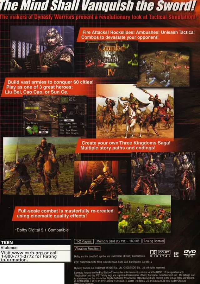 Dynasty Tactics Sony Playstation 2 Game Product Details Part Number: PS2_DYNASTY_TACTICS UPC:040198001168Condition:UsedG…