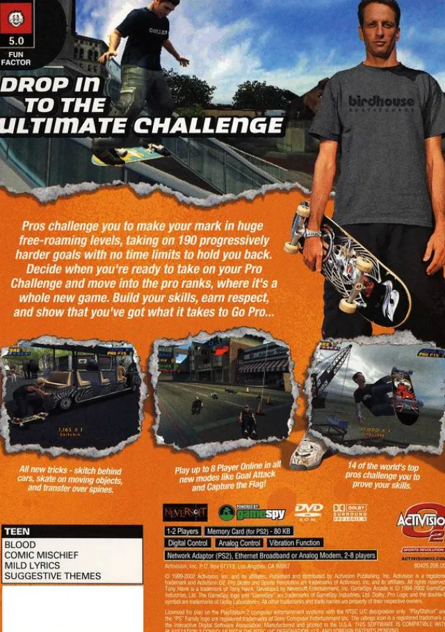 Drop into the ultimate challenge. The world’s best skateboarding game reinvents itself to give users the real-life experience of a hardened amateur skater. In the next chapter in the Tony Hawk series, pros challenge you to make your mark in huge free-roaming levels, taking on 190 progressively harder goals with no time limits to hold you back. Build your skills, perform all-new tricks, play up to eight players online, and show that you’ve got what it takes to go Pro.